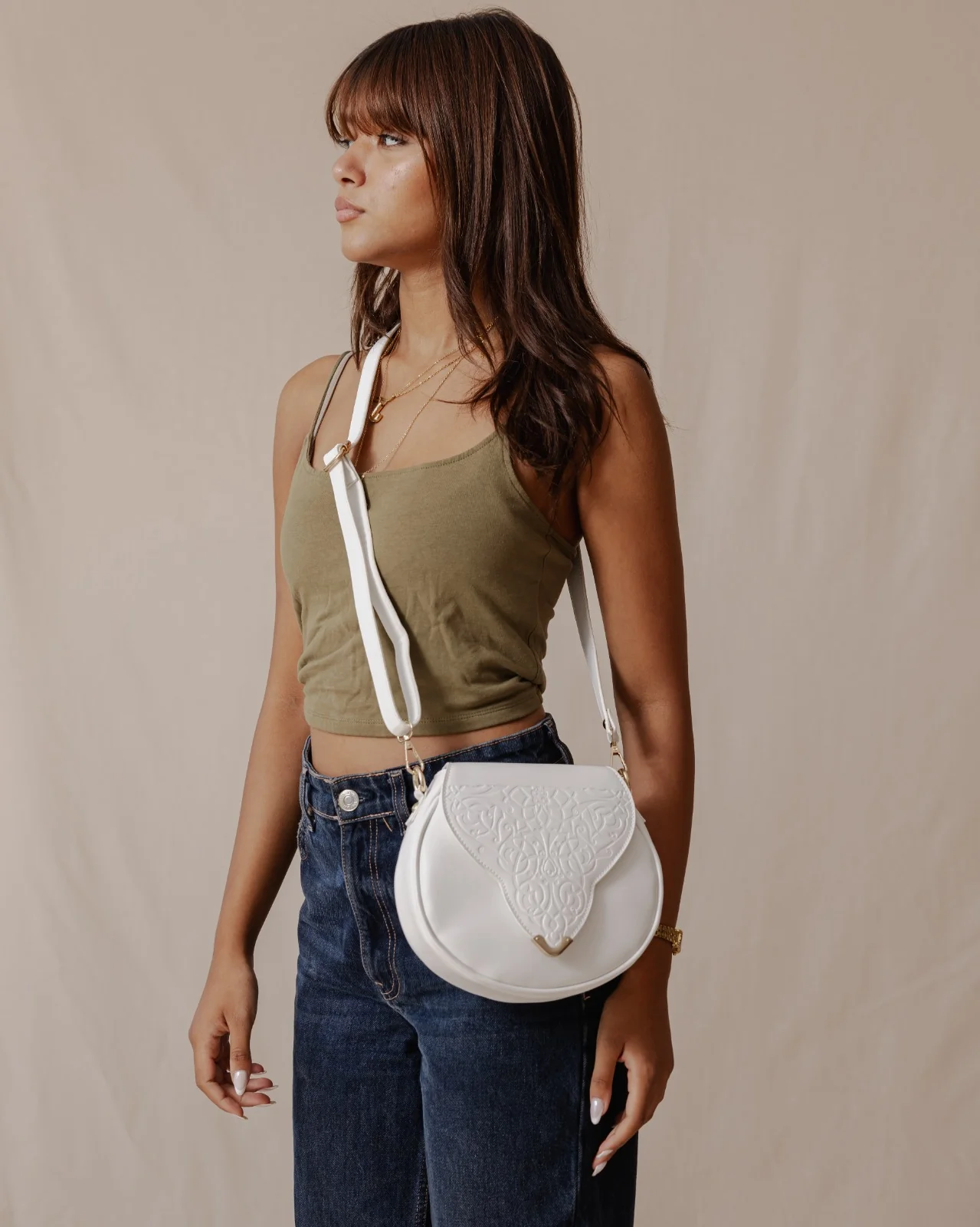 Our leather crossbody bag with detailed engraving adds a unique charm to your everyday look. The timeless design and durable construction make it both stylish and practical.