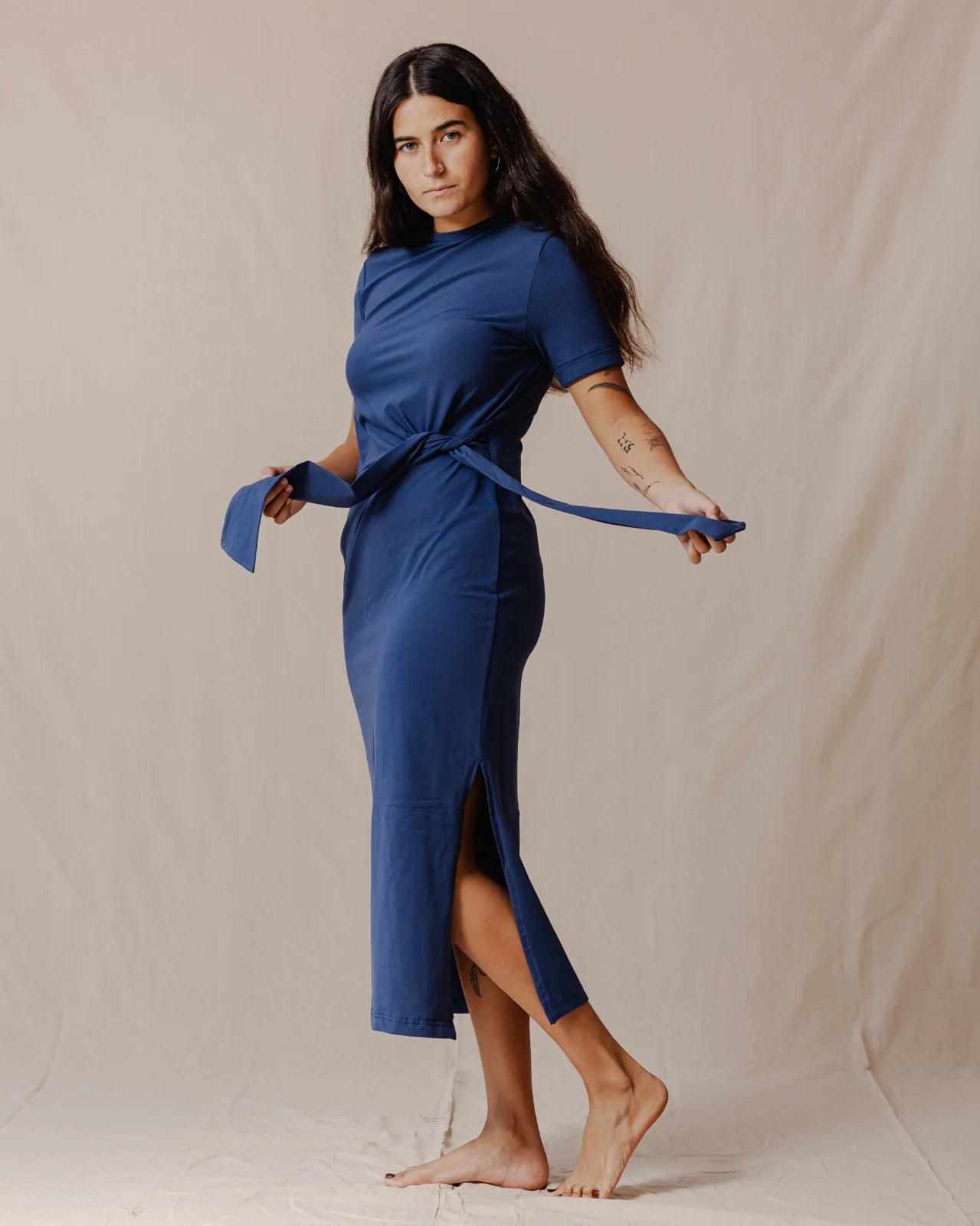 Indulge in the warm weather with this breezy cotton midi dress. Featuring a playful side tie and a chic slit. Perfect for effortless summer style.