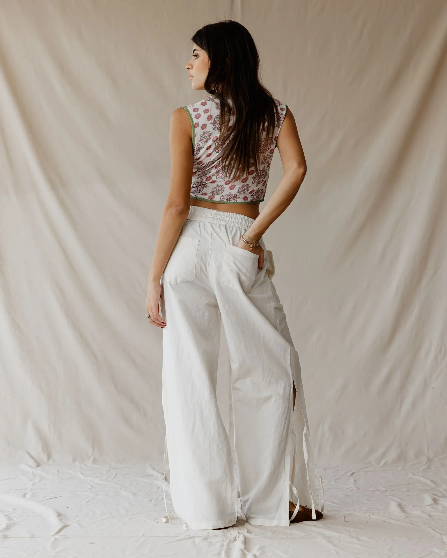 Forget your everyday trousers. These high-waisted, wide-leg pants feature unique, fashionable self-tie details down the side for a totally relaxed and chic look.