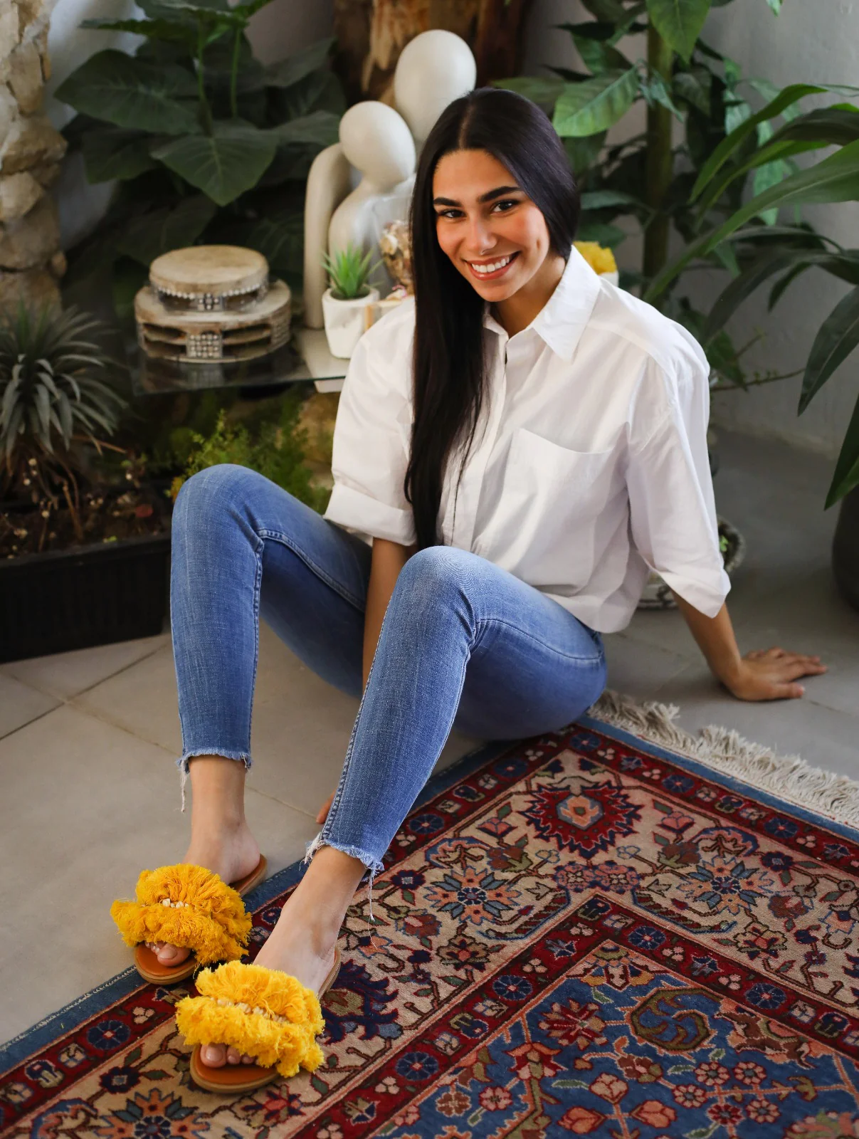 Threaded Stones Mustard Slippers