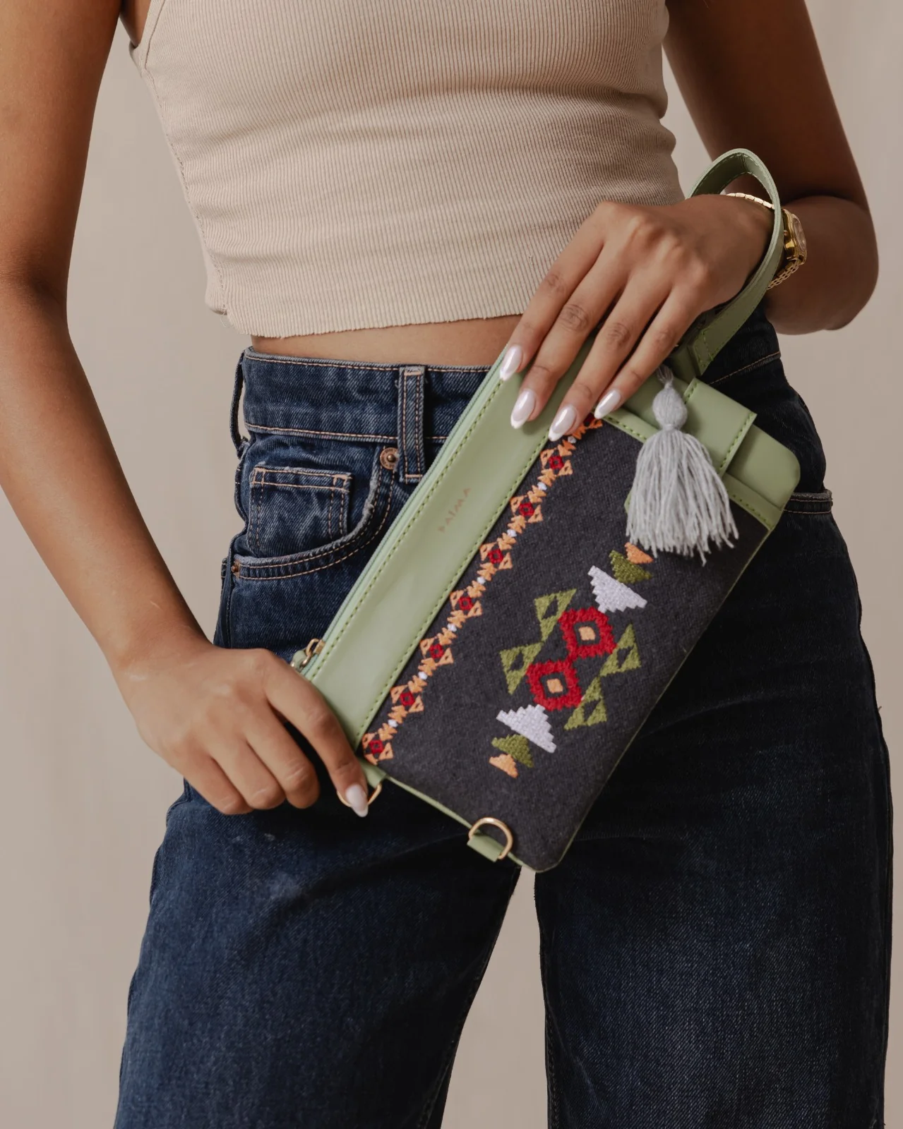 Tribal Tapestry Purse In Dark Blue X Pistachio